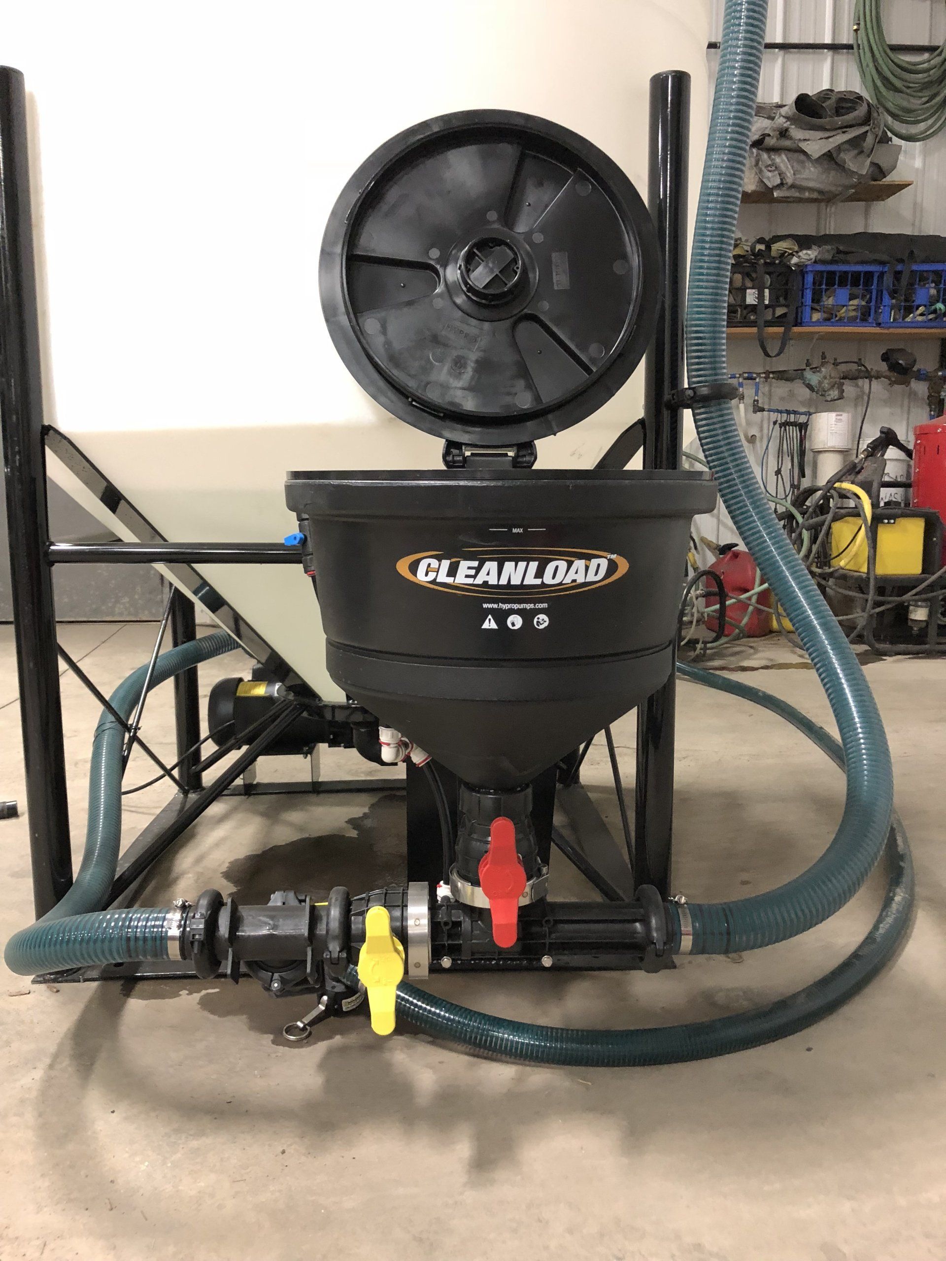 - 1.5" Diameter discharge hose quickly transfers mix to sprayer tank